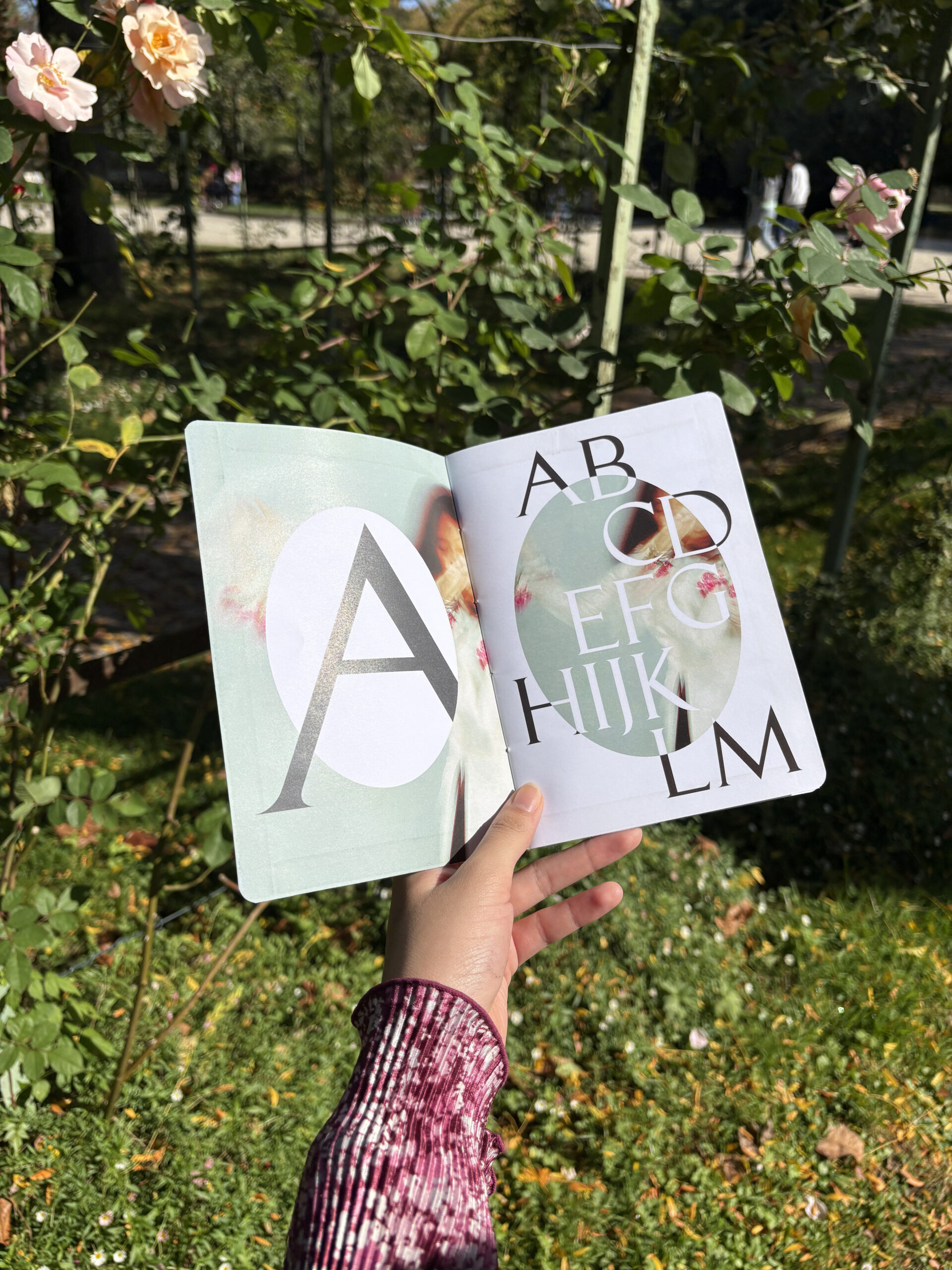 Tracées à la plume et à l’encre, mes capitales romaines ont ensuite été vectorisées pour créer un spécimen. Ce projet m’a permis de préserver le geste manuel tout en lui apportant une précision numérique. La typographie « Ballet » s’inspire du mouvement et de la légèreté de la danse classique, mêlant douceur et élégance. Les photographies qui accompagnent le spécimen, aux teintes pastel et aux flous poétiques, renforcent cette atmosphère féérique. J’ai travaillé la mise en page de manière à valoriser les détails du tracé et le rythme visuel des lettres. Les images et la typographie dialoguent ainsi pour créer un univers sensible et cohérent. À travers ce projet, j’ai voulu célébrer la grâce du mouvement et la beauté du trait.